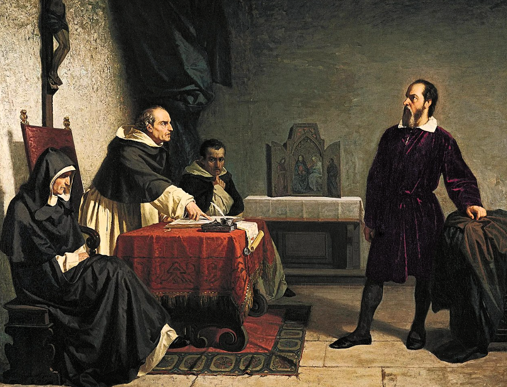 1611 yılında Roma’da Bilim Akademisine seçilmiş, Floransa’ya dönüşünde yayımladığı kitapta Copernicus’un teoremlerini savunarak, bilim dünyasını ikiye bölmüştür. Bunun yanında papazların da düşmanlığını kazanmıştır. Papazlar ile olan zıtlıkları yüzünden 1615 yılında Roma’ya Vatikan’a giderek papalığa bizzat savunma yapmak zorunda kalmıştır. Papa 5.Paul, 1616 yılında Galileo’nun kitapları için bir tetkik komisyonu kurdurmuştur. Papa, Galileo’nun “Dünya’nın Döndüğü” iddiasından vazgeçmesini istemiş, bunun kutsal kitaba aykırı ve baştan aşağıya sapıklık olduğunu söylemiştir. Galileo, bundan sonra bu konu hakkında konuşmaktan vazgeçmiş ve daha çok bilimin pratik kısmına yönelmiştir.