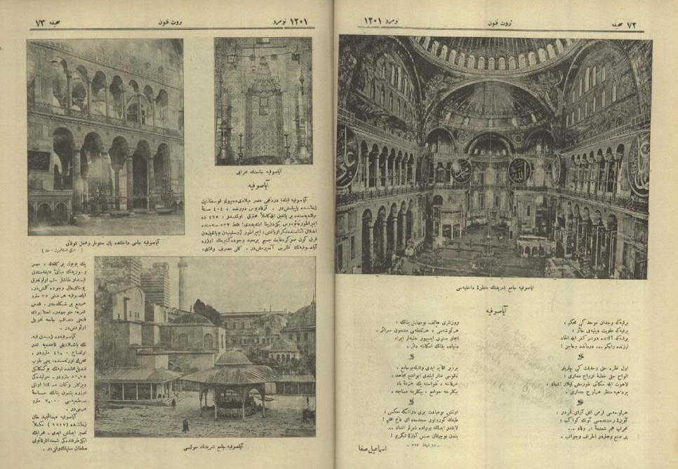 “Ayasofya’nın esaslı bir tamirle takviye edilmezse, bir gün birden bire” yıkılıvermesi ihtimali kaç senedir yalnız Türkiye’de değil hatta bütün sanat aleminde, efkarı, endişe ile doldurmaktadır. Mimari’de, dekoratif, hünerlerde pek çok nefis eserler bıraktıktan sonra ölmüş bir medeniyetin, Bizans inceliğinin şaheserleri, göz göre göre çöküp giderken, sanat duygusuyla mütehassis insanlar, bu acıya ilgisiz kalamazlar… Bu hususta tesirli faaliyetler göstermek ise, Sanayi-i Nefise Encümeni’nin vazifelerindendir.”