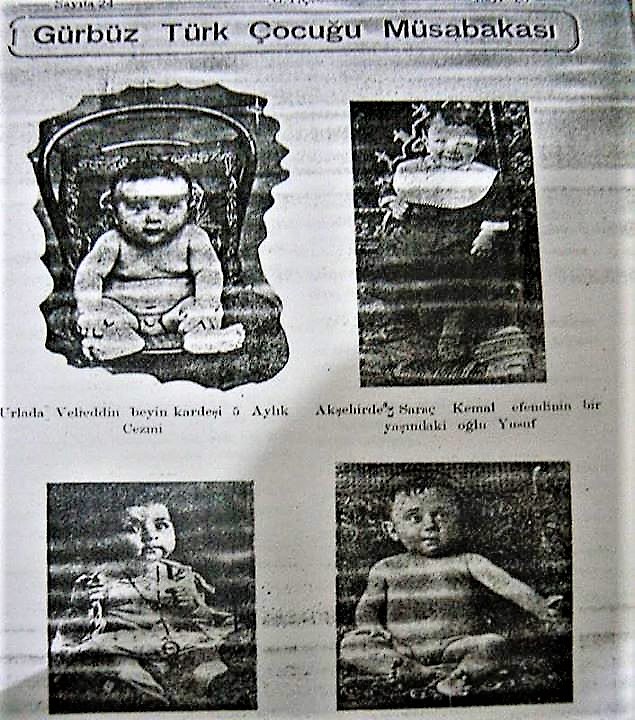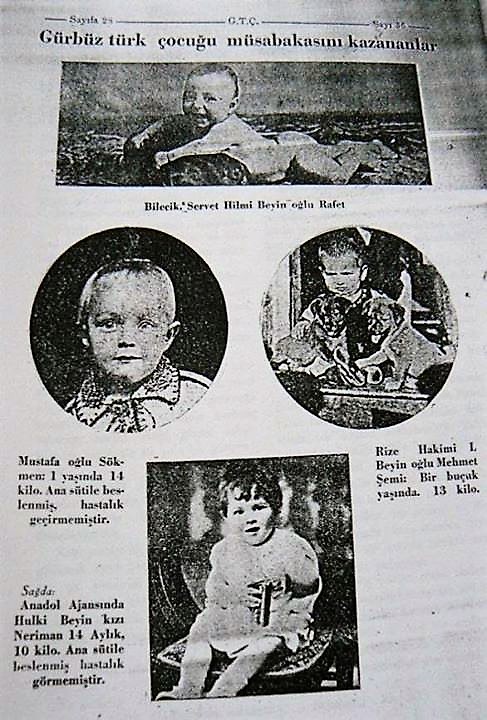 “Isparta Umum Gazeteciler Bayii Lütfü efendi kerimesi 13 aylık Pervin. Boyu 50 santim, ağırlığı 9 kilo. Anne sütüyle beslenmiştir. Şimdiye kadar hiçbir hastalık görmemiştir’ yada “Sinop Himaye-i Etfal Cemiyeti Reisi Zühdü Beyin ikiz evlatları. Yılmaz ve Yıldırım. Üç yaşındadırlar. Kısmen ana sütüyle kısmen hayvan sütüyle beslenmişlerdir. Hiç hasta olmamışlardır.” (Gürbüz Türk Çocuğu Müsabakası”, Gürbüz Türk Çocuğu, XXIX, Şubat 1929, s. 23)