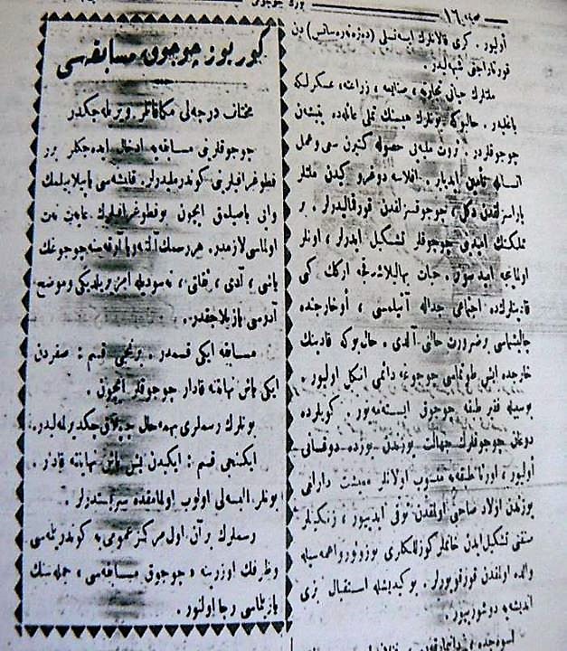 “Gürbüz Çocuk Müsabakası, Muhtelif dereceli mükafatlar verilecektir. Çocuklarını müsabakaya idhal edecekler birer fotoğraflarını göndermelidirler. Klişesi yapılabilmek veya basılmak için bu fotoğrafların gayet net olması lazımdır. Her resmin altına veya arkasına çocuğun yaşı, adı, sikleti, ne sütü ile emzirildiği ve mevzi-i adresi yazılacaktır. Müsabaka iki kısımdır. Birinci kısım sıfırdan iki yaş nihayetine kadar çocukları için. Bunların resimleri behemehal çıplak çektirilmelidir. İkinci kısım: ikiden beş yaş nihayetine kadar. Bunlar elbiseli olup olmamakta serbesttirler. Resimlerin bir an evvel merkez-i umumiyeye gönderilmesi ve zarfın üzerine çocuk müsabakası cümlesinin yazılması rica olunur. (Gürbüz Çocuk Müsabakası”, Gürbüz Türk Çocuğu, II, Teşrinisani 1926, s. 16)