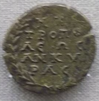Üzerinde “MHTROΠOΛΕΩΣ ANKYPAΣ” (Helence-Metropolis Ankyra) yazan Roma dönemi sikkesi (Anadolu Medeniyetleri Müzesi (AMM)- Çağlar Boyu Ankara Sergisi, 68 nolu sikke)