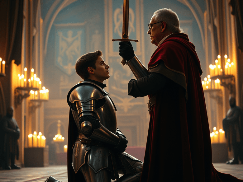 - “Dubbing” (Şövalyeliğe Kabul Töreni): Ritüelin en önemli aşaması “dubbing” olarak bilinir. Bu aşamada, mevcut bir şövalye veya lord, adayı dizleri üzerine vurarak ona “şövalye” unvanını resmi olarak verir. Bu, genellikle bir kılıçla yapılan sembolik bir vuruş olarak gerçekleştirilirdi. Bu an, adayın artık bir şövalye olarak kabul edildiği ve bu unvanı hak ettiği anlamına gelirdi.